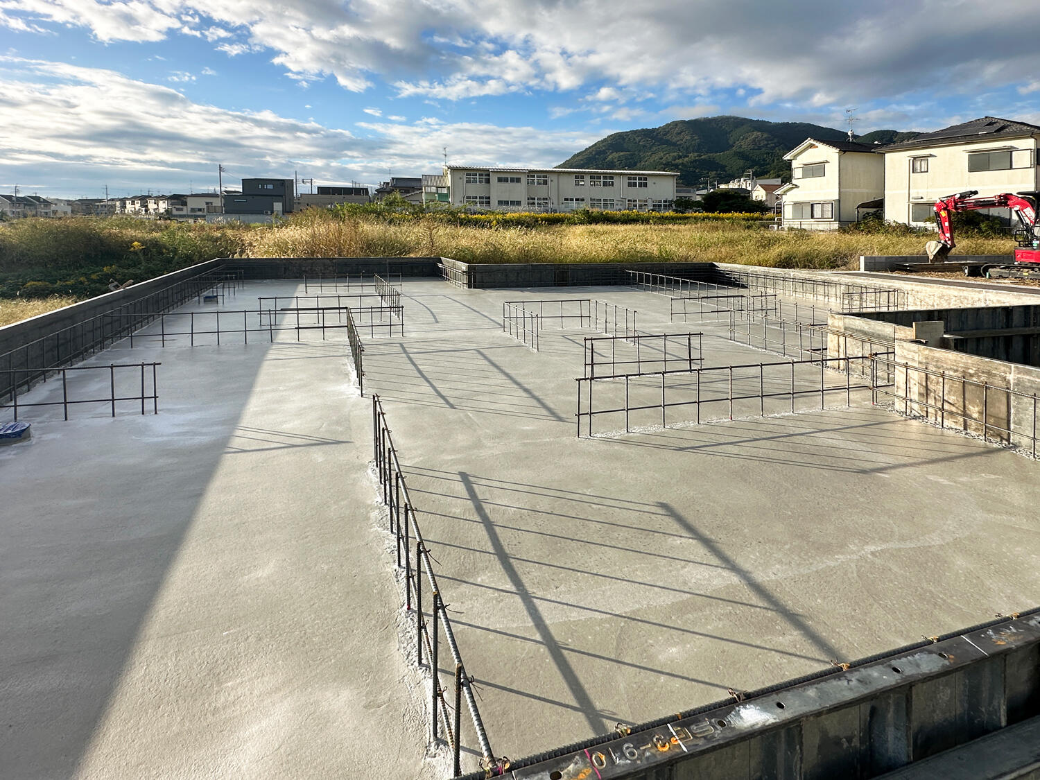 【香芝市】基礎工事が進んでいます-4 2025.10.25|基礎工事 こんにちは。コーエイタウン香芝市穴虫の長期優良住宅の現場では、基礎工事が進んでいます。基礎の底盤部分にコンクリートを打設しました。 建物をしっかりと支える大切な工程です。 この後は、立ち上がり部分の型枠を組み、基礎の形がより明確になっていきます。 前の記事 一覧に戻る