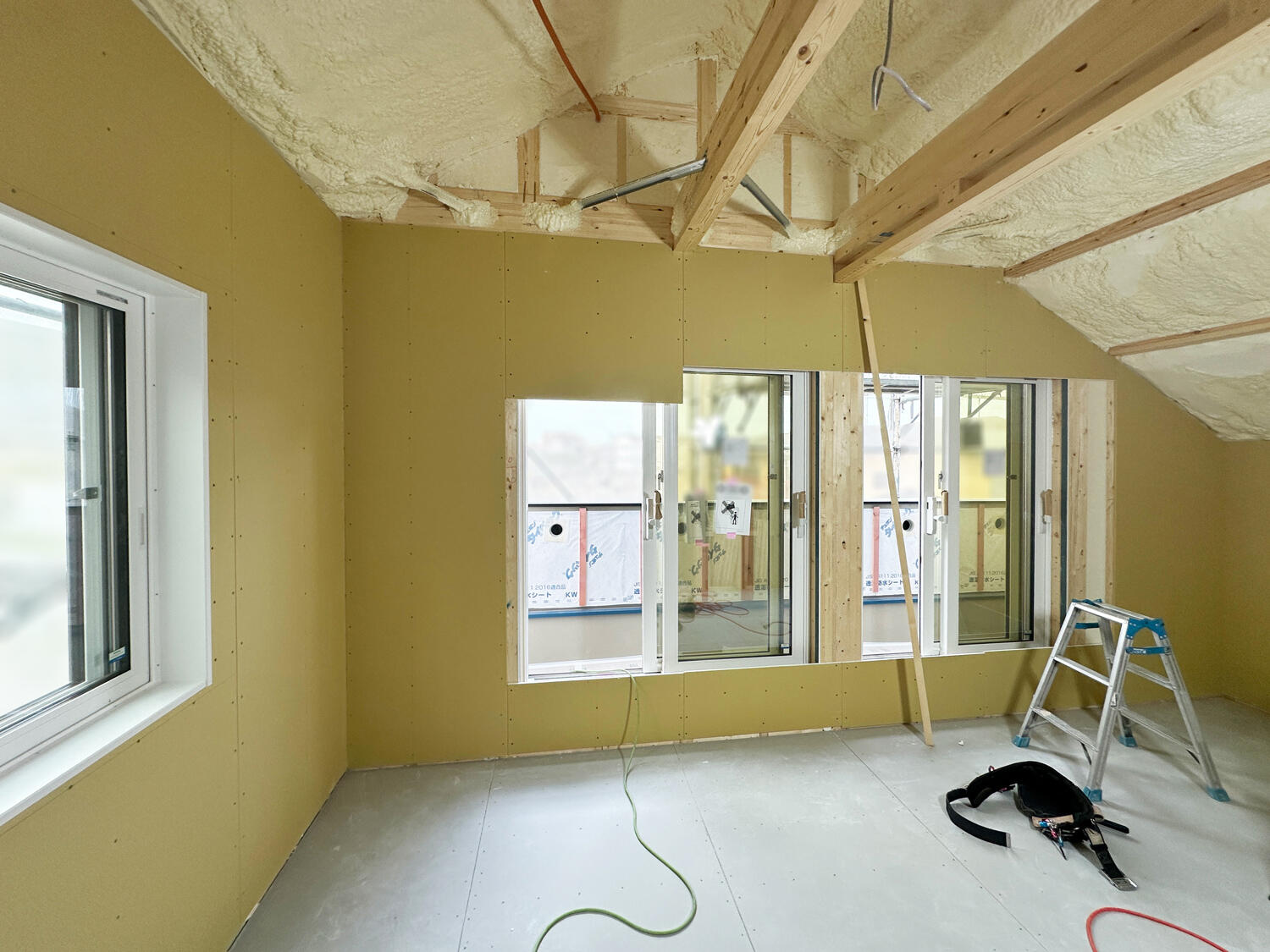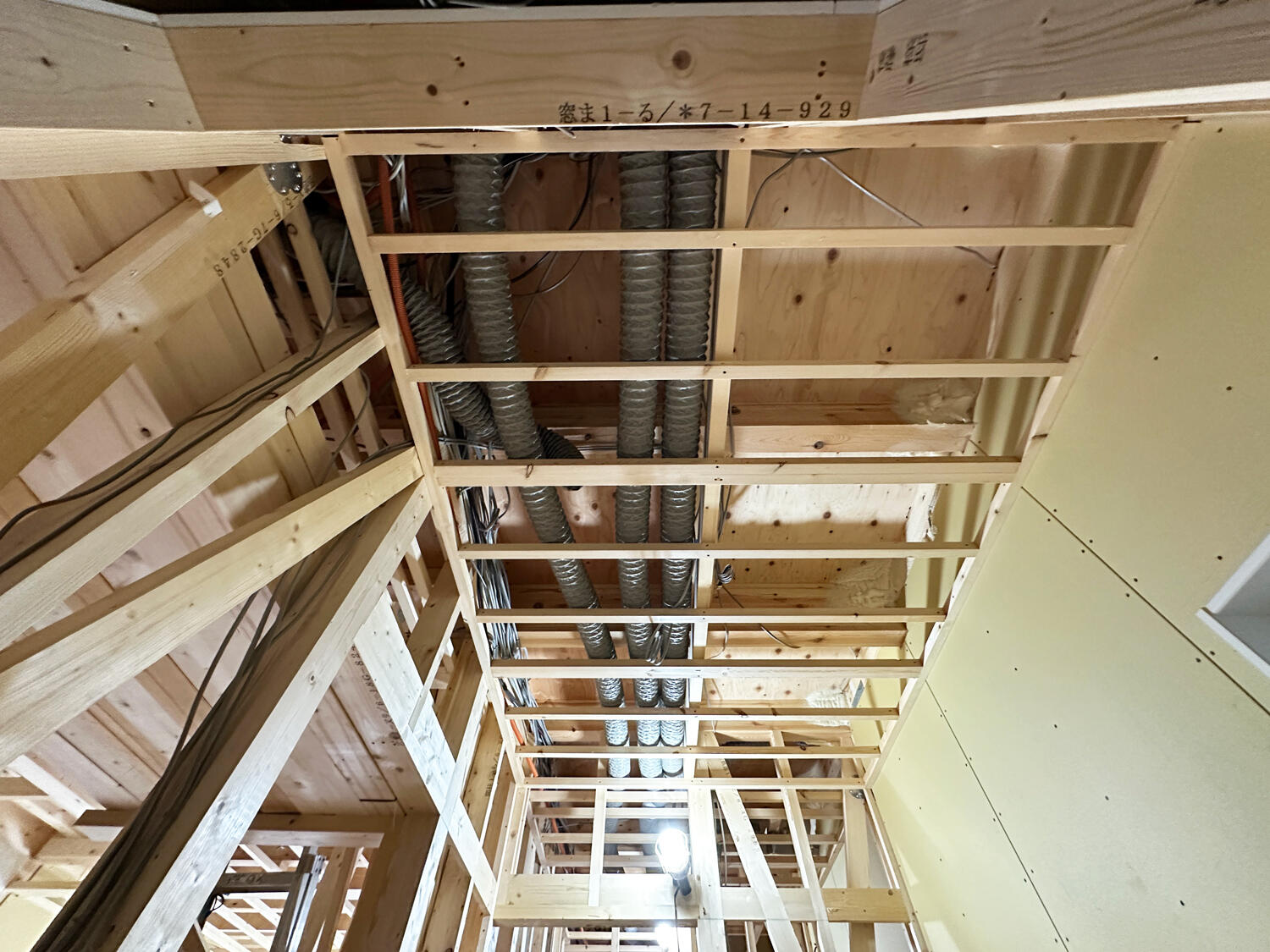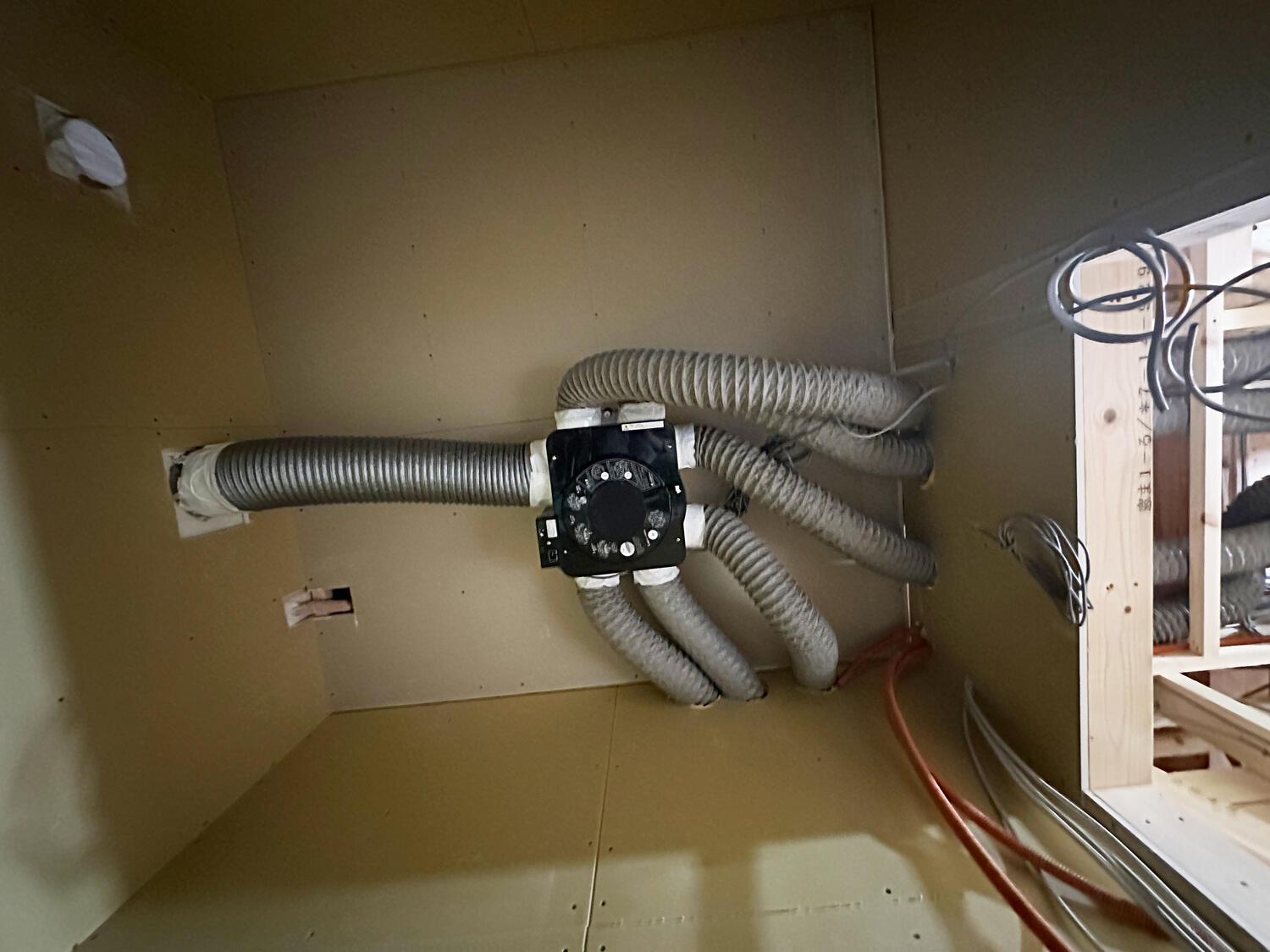 【松原市】24時間換気の施工をしました 2025.10.14|換気システム こんにちは。松原市の長期優良住宅&ZEH(ネット・ゼロ・エネルギー・ハウス)の現場では24時間換気の本体を設置しました。配管も真直ぐ綺麗に施工できています。2階の壁の石こうボードも張り進めています。 次の記事 前の記事 一覧に戻る