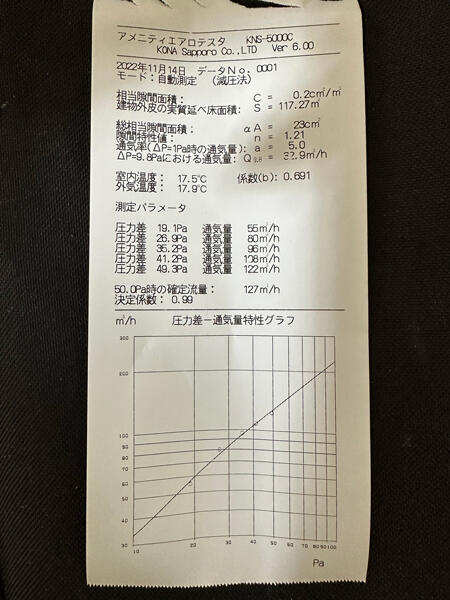 気になる結果は、C値0.2c㎡/㎡でした。