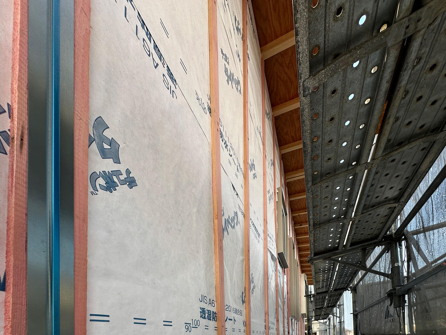 【奈良】高耐久の透湿防水シートを施工しました 2025.09.13|外壁工事|耐久性|防水工事 こんにちは。奈良の現場では、高耐久の透湿防水シート・タイベックを施工しました。透湿防水シートは、外壁の表面を越えてくる雨水の侵入を防いでくれます。数年でボロボロになるシートもありますが、タイベックは高耐久なので安心ですね。 次の記事 前の記事 一覧に戻る