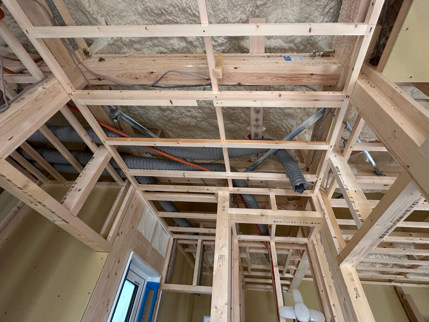 【奈良】換気ダクトを施工しました 2025.09.23|電気工事 こんにちは。奈良の現場では、換気ダクト(グレーの配管)を施工しました。天井を張ると見えなくなるので、先に配管を通します。 次の記事 前の記事 一覧に戻る