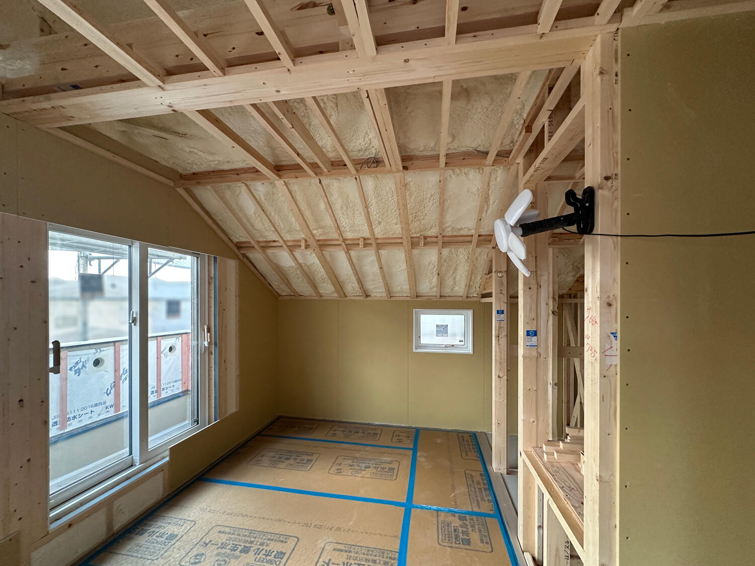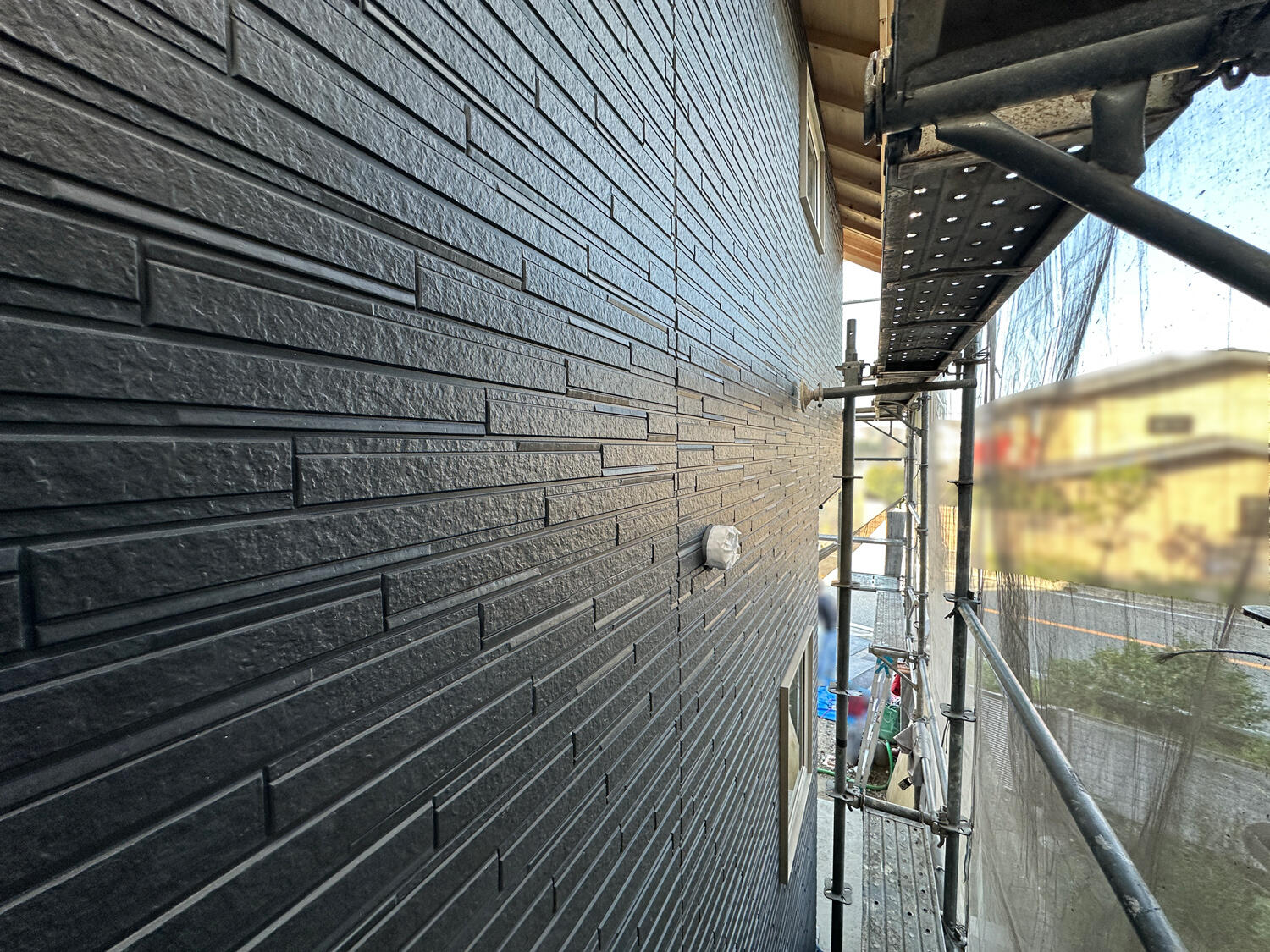 【松原市】外壁を張り始めました 2025.10.17|外壁工事|大工工事 こんにちは。松原市の長期優良住宅&ZEH(ネット・ゼロ・エネルギー・ハウス)の現場では、外壁材サイディングを張り始めました。今回はニチハのディスタシェイドV ストレムMGネイビーを採用していただきました。2階のフローリングも張り進めています。最近人気のグレージュヒッコリー柄の床です。 次の記事 前の記事 一覧に戻る