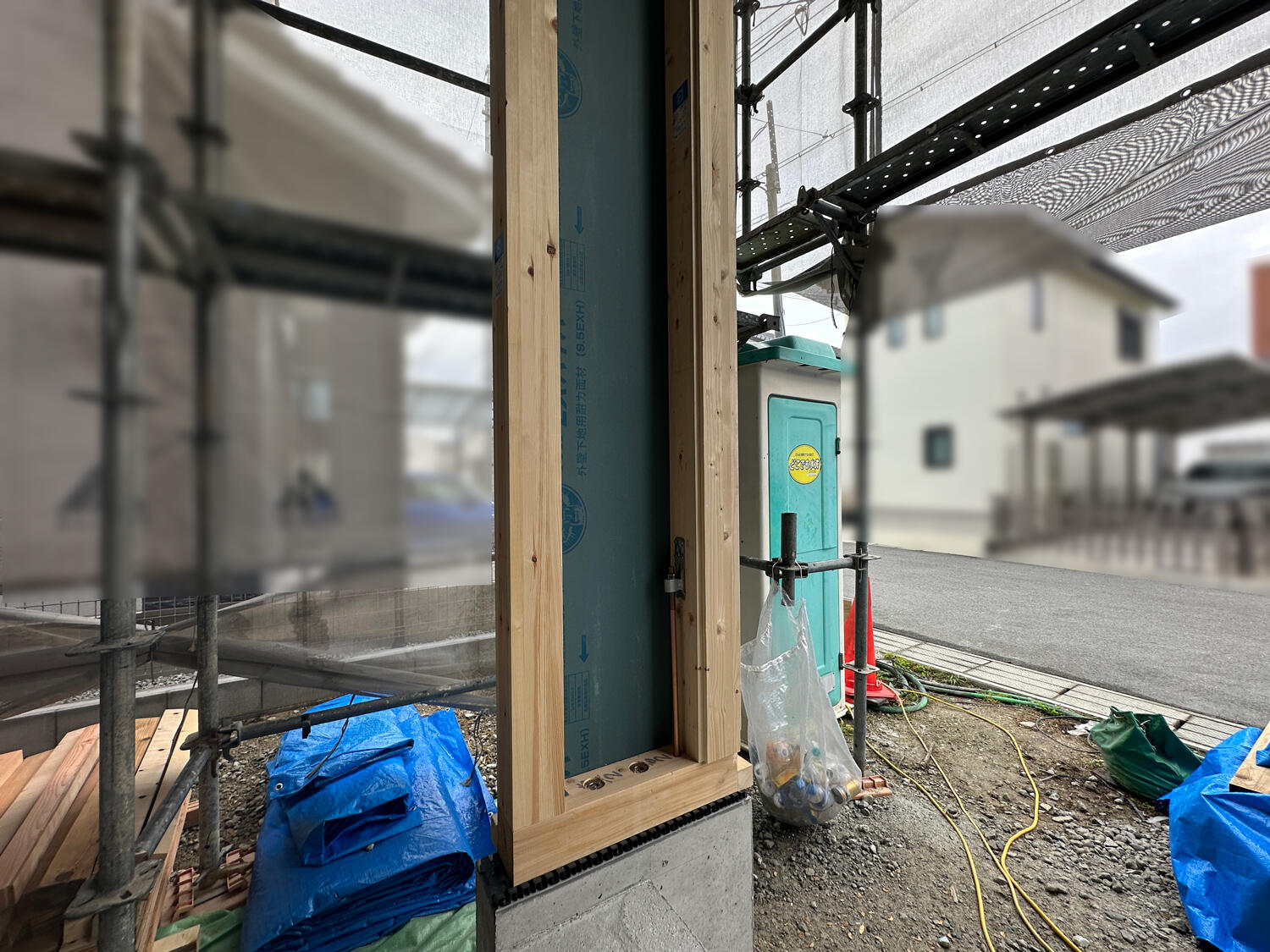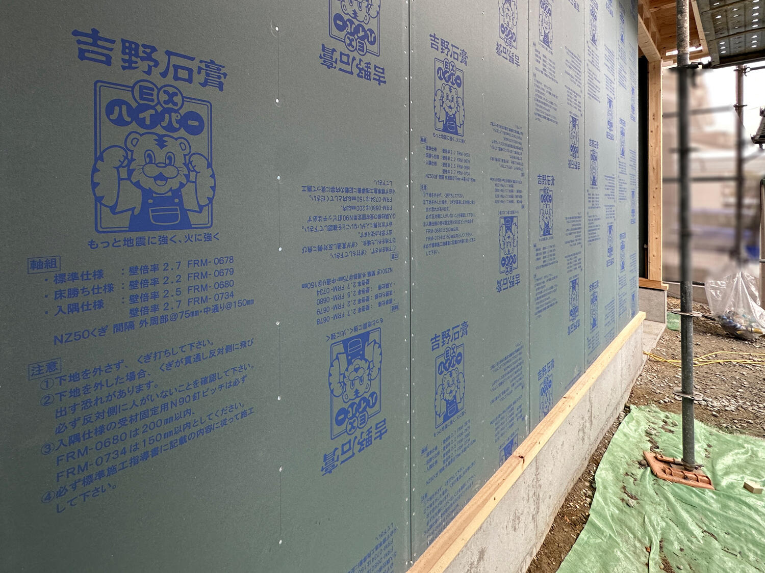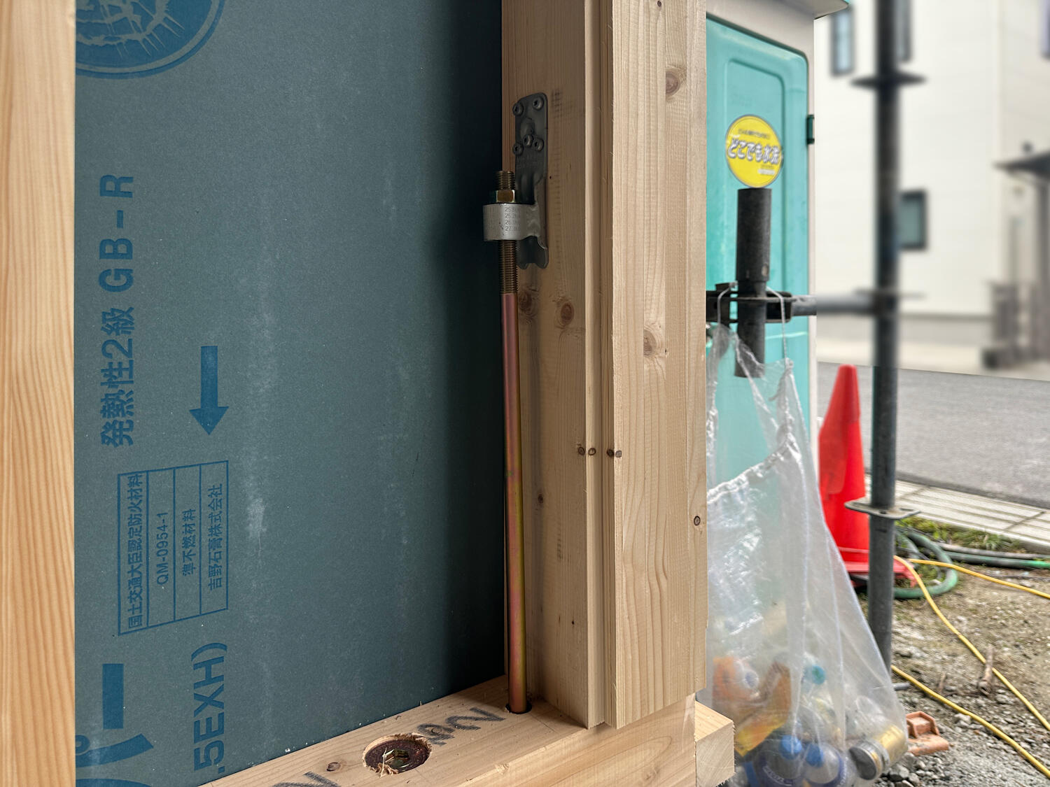 【香芝市】中間検査に向けて施工を進めています 2025.10.26|大工工事 こんにちは。香芝市・コーエイタウン上中の長期優良住宅&ZEH(ネット・ゼロ・エネルギー・ハウス)の現場では、構造用面材の釘の施工をしました。外周部は7.5cm間隔で専用の釘を打ち中通りは15cm間隔で専用の釘を打ちます。外部の壁の中にも建築金物が仕込まれています。足元は25kN(キロニュートン)用の金物上部は15kN用の金物を施工しています。使用する金物の強度、数、位置は許容応力度計算という500ページに渡る計算書にて決まってきます。耐震等級3、耐風等級2になるように、丁寧に施工しています。 次の記事 前の記事 一覧に戻る