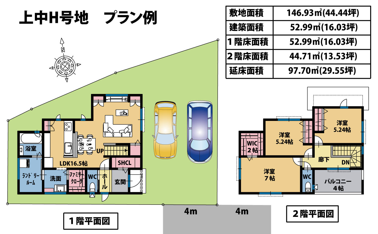 参考プランの建物29.55坪(97.70㎡)の場合![]()