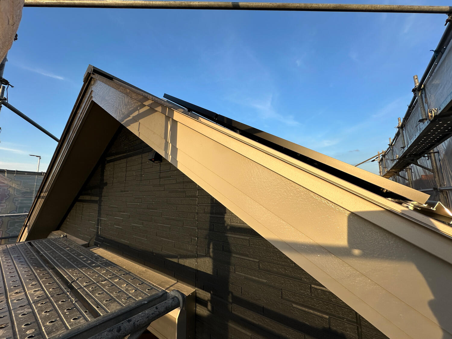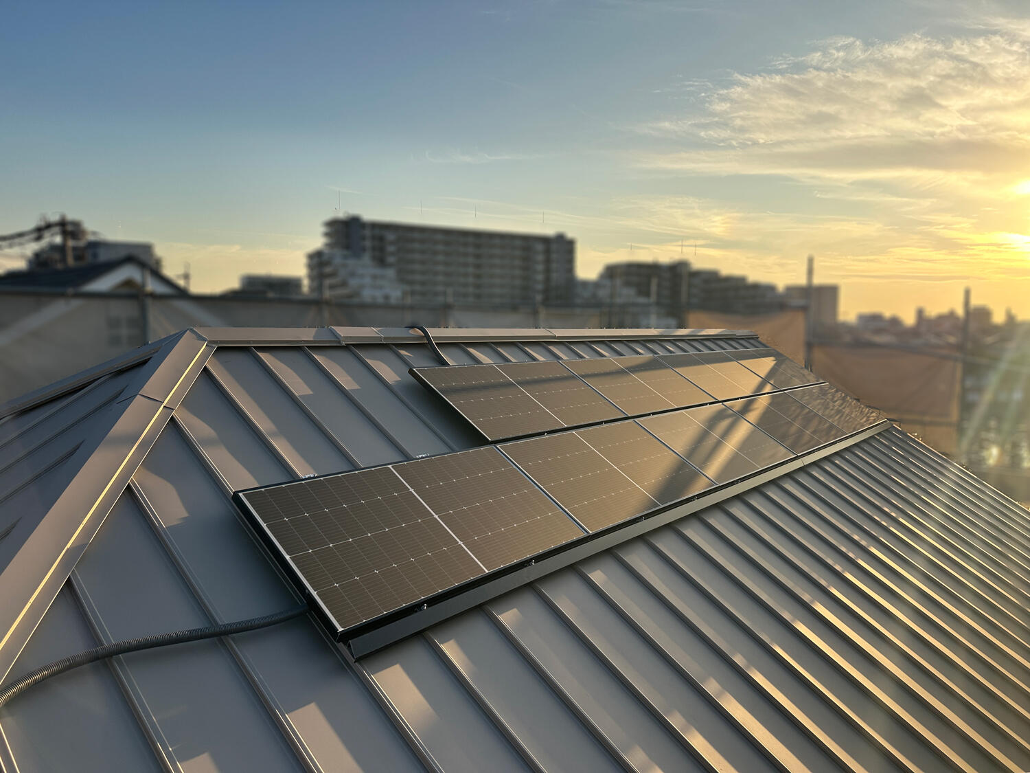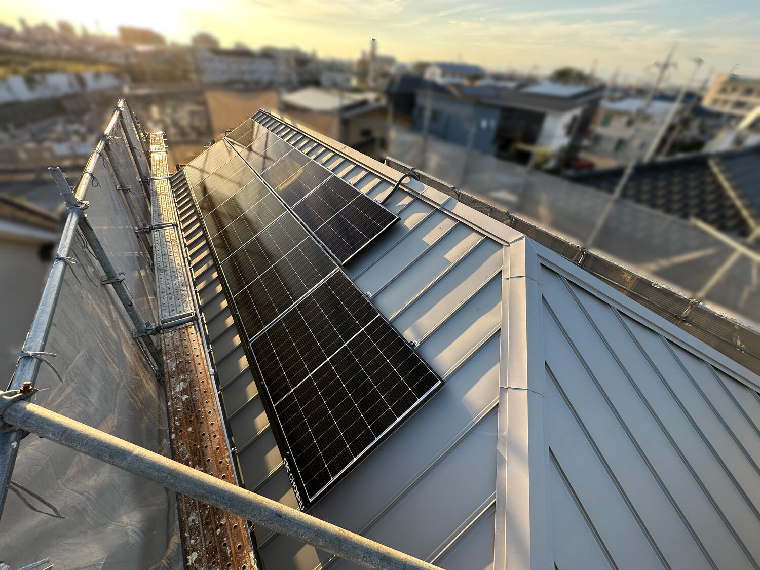 【松原市】太陽光発電パネルを載せました 2025.10.31|収納|塗装工事|大工工事|太陽光発電システム こんにちは。松原市の長期優良住宅&ZEH(ネット・ゼロ・エネルギー・ハウス)の現場では、太陽光発電パネルを載せました。今回は補助金対策で北面にも搭載しています。北面のパネルは低反射パネルなので、北隣さんへ眩しさを低減しています。屋根の側面、破風の塗装も完了しています。軒天と色を合わせてスッキリした印象です。内部の収納も仕上がってきています。クローゼット内の桐板は、湿気やカビに強い仕上げです。 前の記事 一覧に戻る