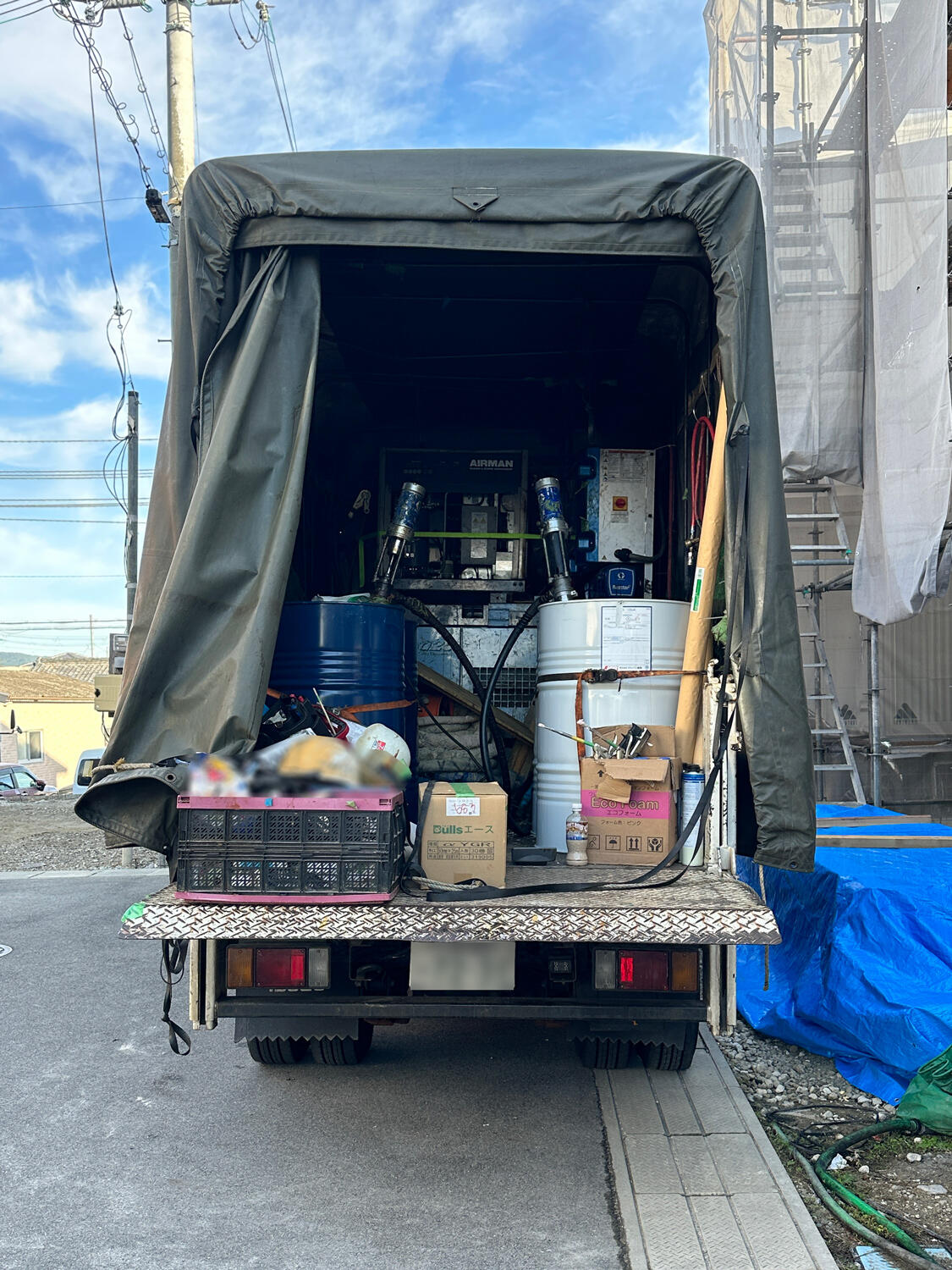 【香芝市】ウレタン吹付け断熱を施工します 2025.11.04|断熱工事 こんにちは。香芝市・コーエイタウン上中の長期優良住宅&ZEH(ネット・ゼロ・エネルギー・ハウス)の現場では、ウレタン吹付け断熱を施工します。トラックの荷台にある2本のドラム缶の中の材料をミックスして、断熱施工をしていきます。 前の記事 一覧に戻る