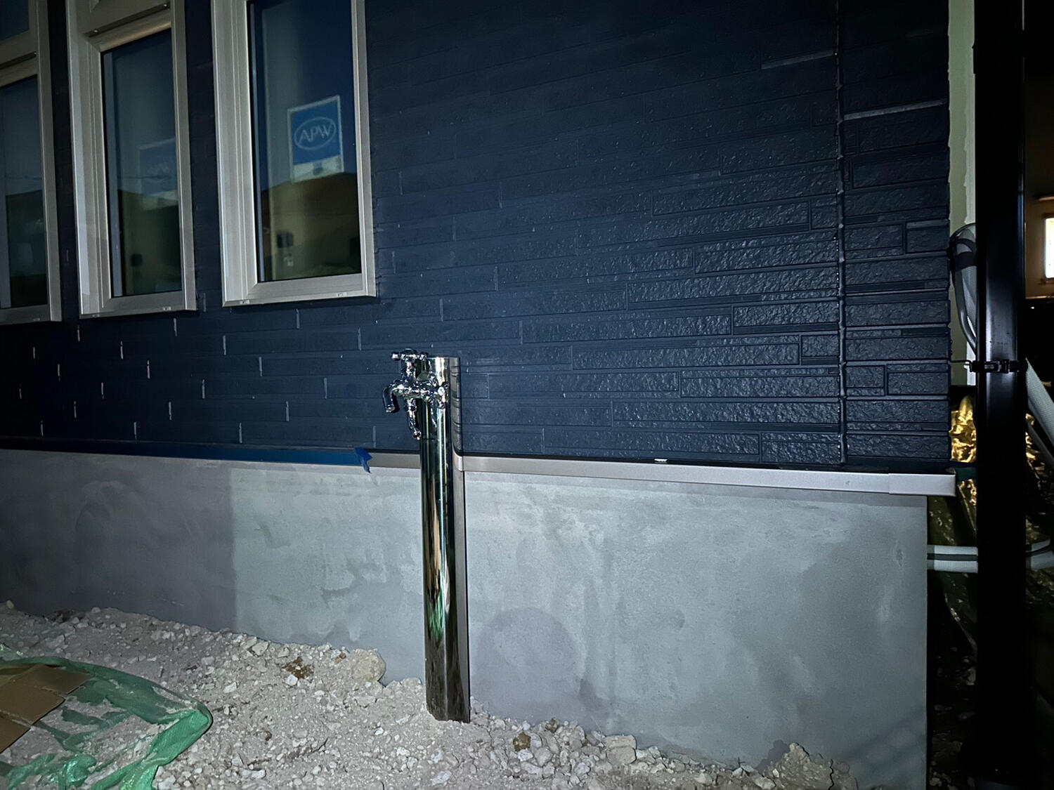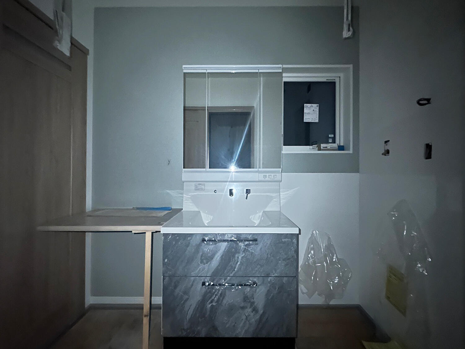 【松原市】キッチンが入りました 2025.11.07|キッチン・洗面台|壁紙・クロス|水道工事 こんにちは。松原市の長期優良住宅&ZEH(ネット・ゼロ・エネルギー・ハウス)の現場では、パナソニックのキッチンが入りました。カップボードも同色で揃えています。リビングのアクセントクロスもグレーで統一しています。明日トイレを設置するため、トイレを優先してクロスを貼っています。洗面化粧台とアイロン用のカウンターです。外部ではステンレスの立水栓がつきました。蛇口が2つあるので便利ですよ。 前の記事 一覧に戻る