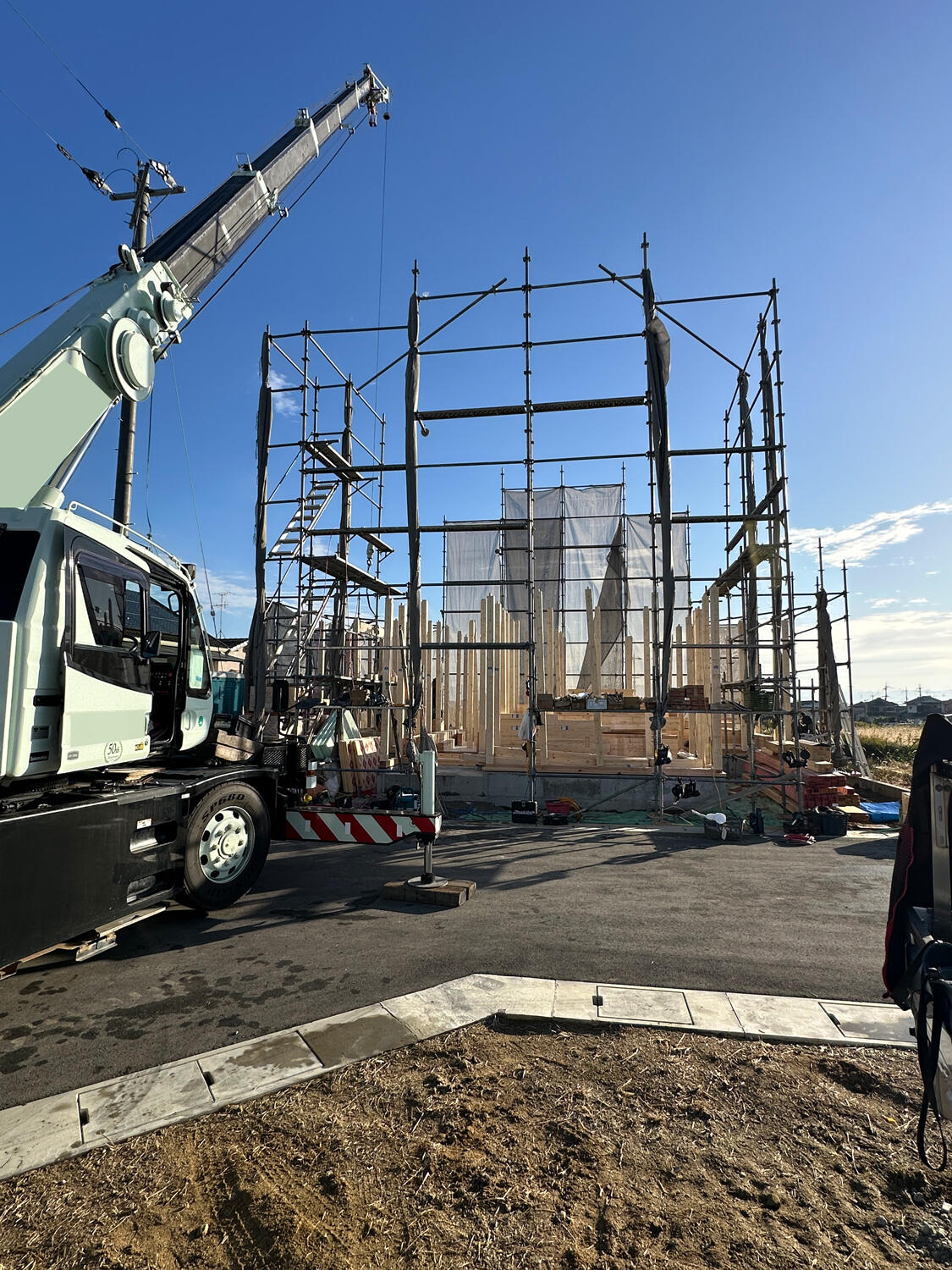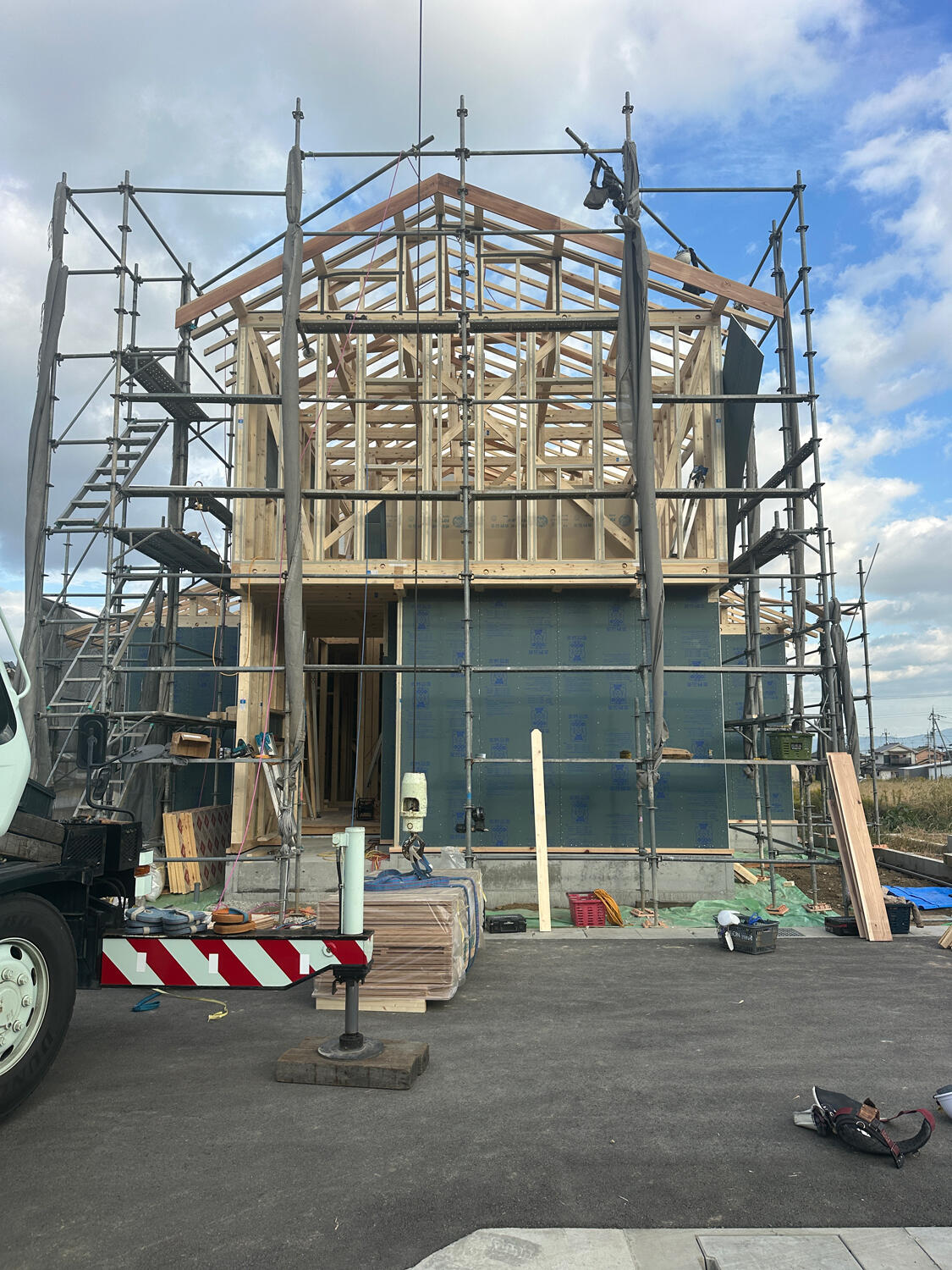 コーエイタウン香芝市穴虫の長期優良住宅の現場では、快晴の中、上棟を迎えました!![]()