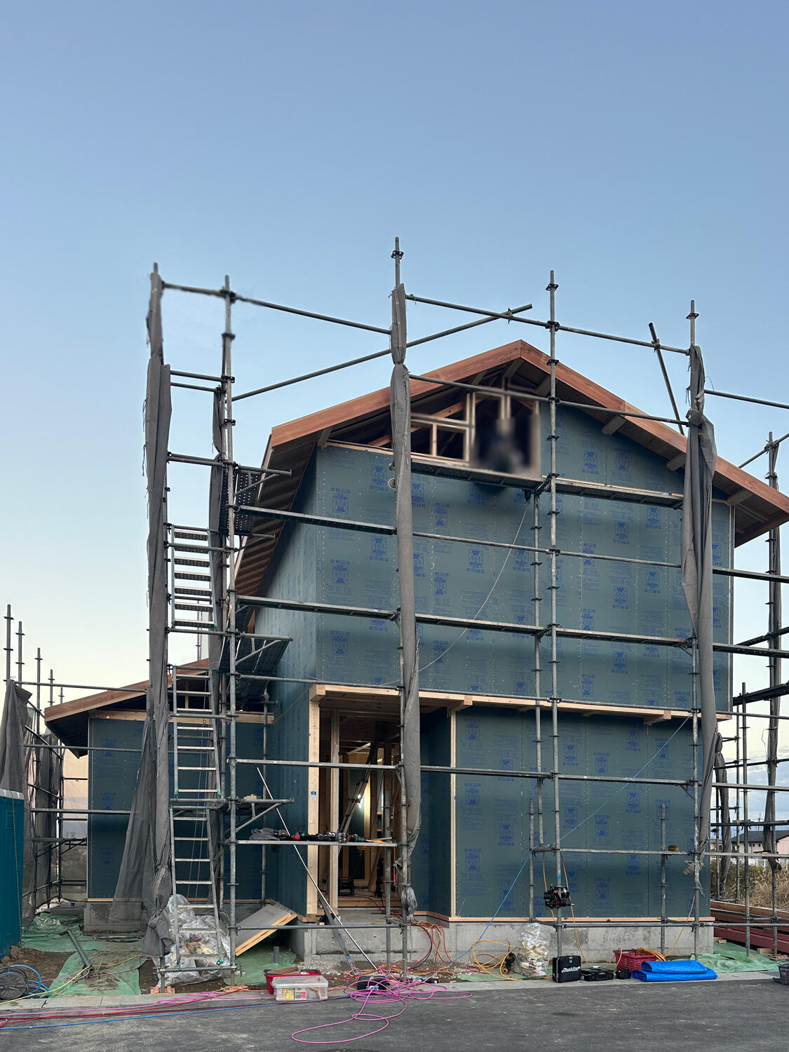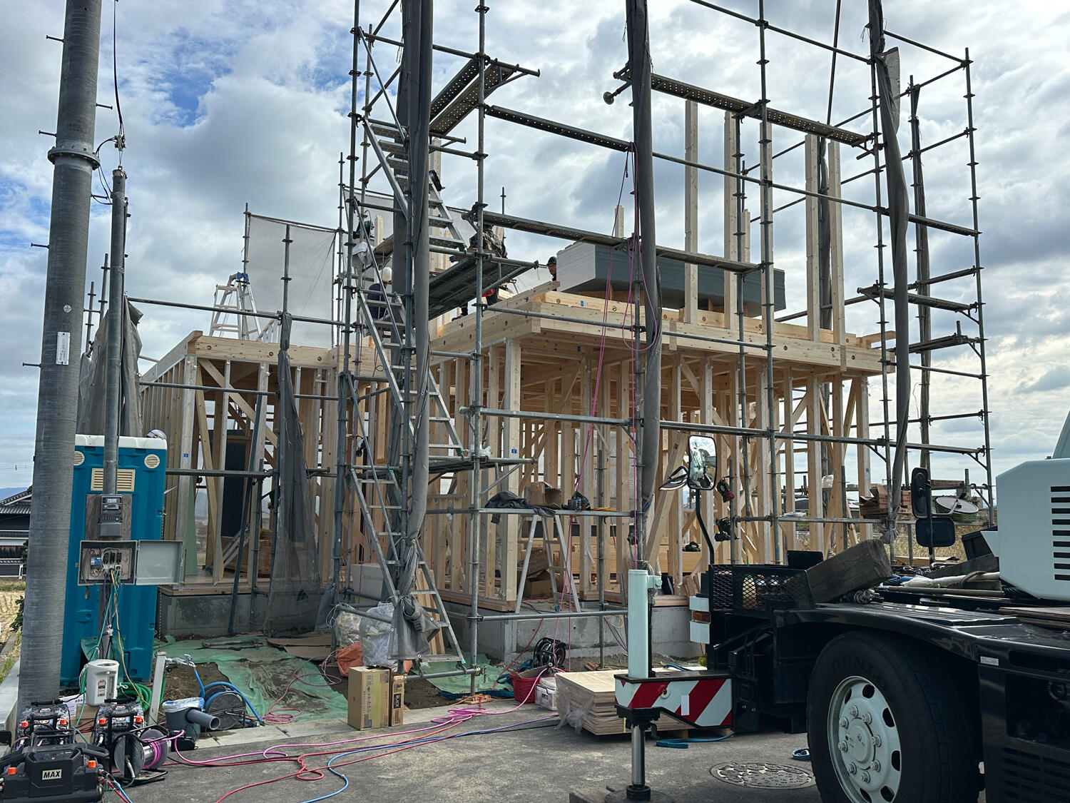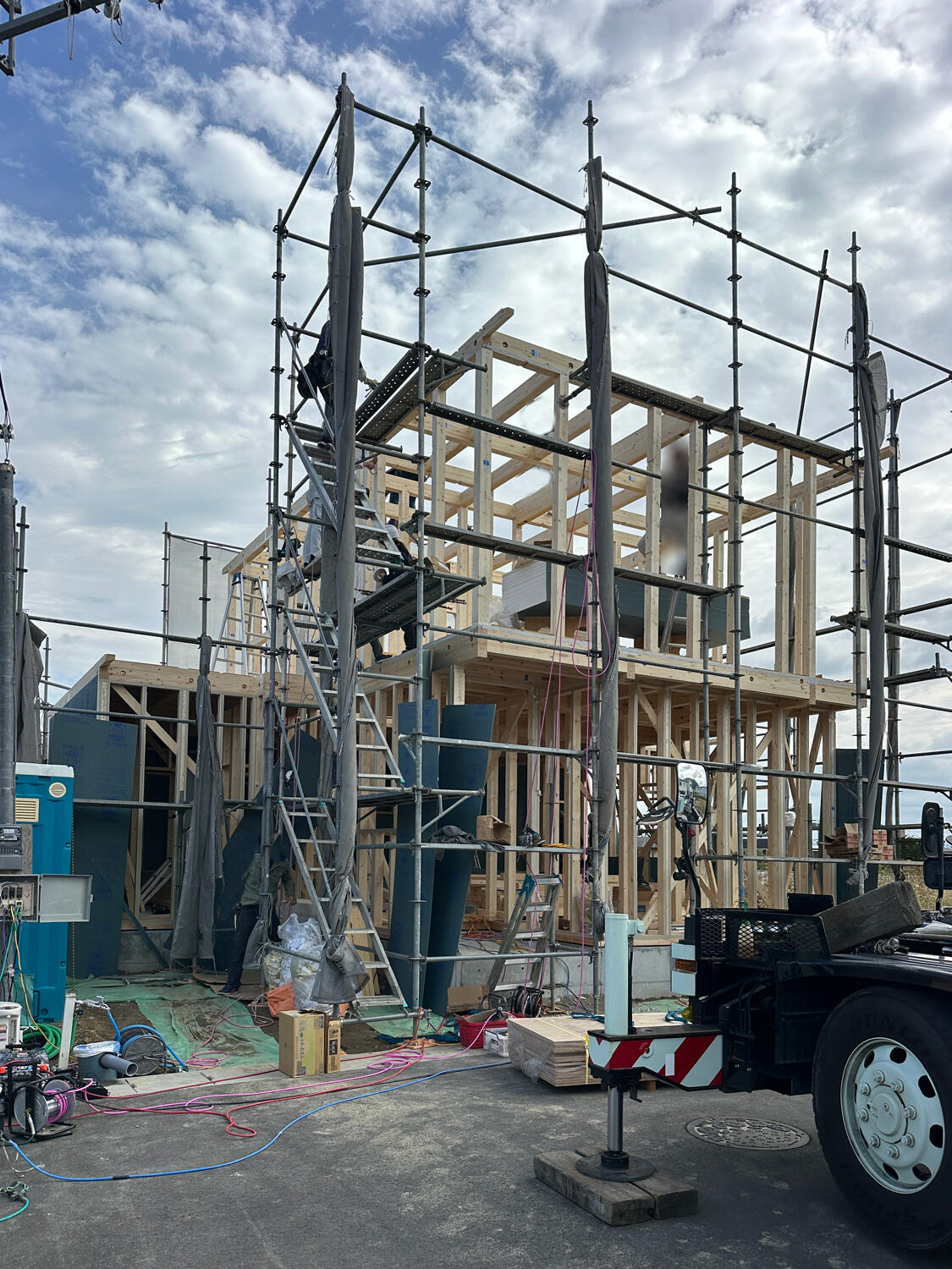 順調に作業が進み、現在は2階の床合板を施工し終わったところです。