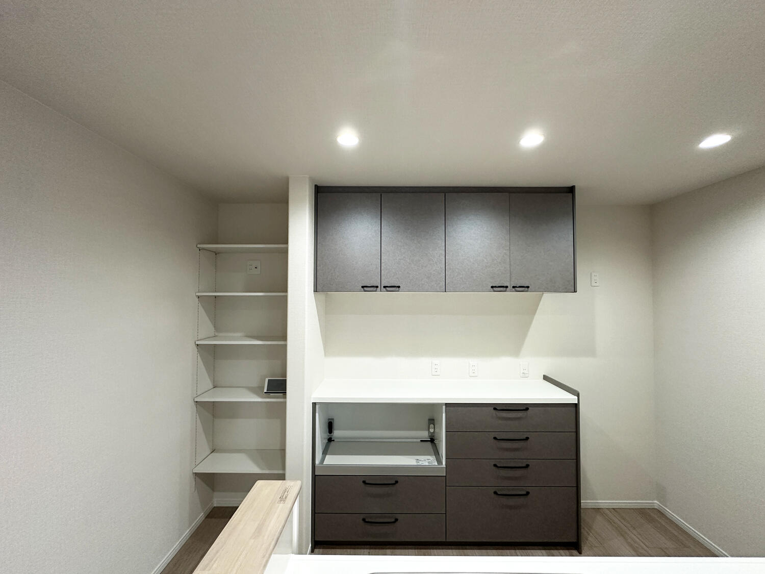 同色のカップボードなので、統一感が合って落ち着きますね。![]()