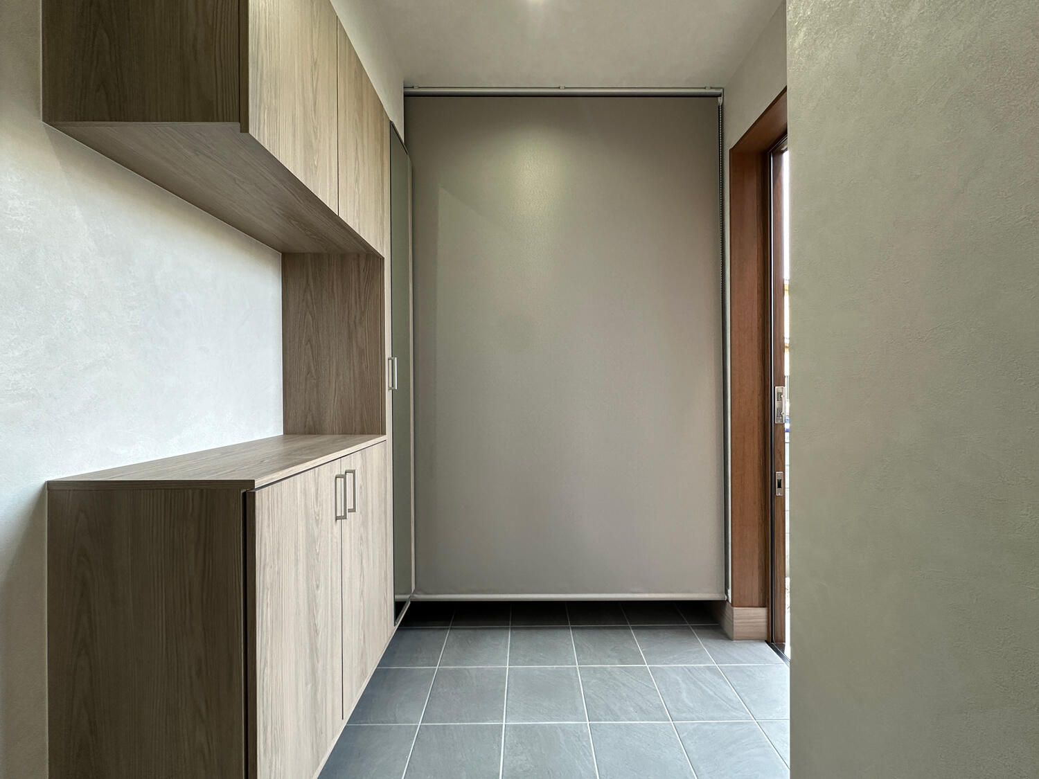 【松原市】バーチカルブラインドが付きました 2025.11.18|カーテン|吹き抜け|照明 こんにちは。松原市の長期優良住宅&ZEH(ネット・ゼロ・エネルギー・ハウス)の現場では、バーチカルブラインドが付きました。道路に近い窓のバーチカルブラインドは視線をカットしています。土間収納にロールスクリーンが付きました。スクリーンを下ろすと壁と同化して美しいですね。こだわりのシーリングファンも通電完了。昼白色のLED電球が家全体の雰囲気を創っています。 前の記事 一覧に戻る