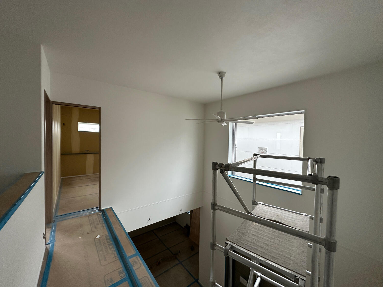 【香芝市】シーリングファンが付きました 2025.12.05|照明|電気工事 こんにちは。香芝市・コーエイタウン上中の長期優良住宅&ZEH(ネット・ゼロ・エネルギー・ハウス)の現場では、吹き抜けのシーリングファンが付きました。冬は上向きの風を起こして、暖かい空気を1階に下ろします。夏は逆回転に切り替え、下向きの風を起こして、1階全体を涼しくします。 次の記事 前の記事 一覧に戻る