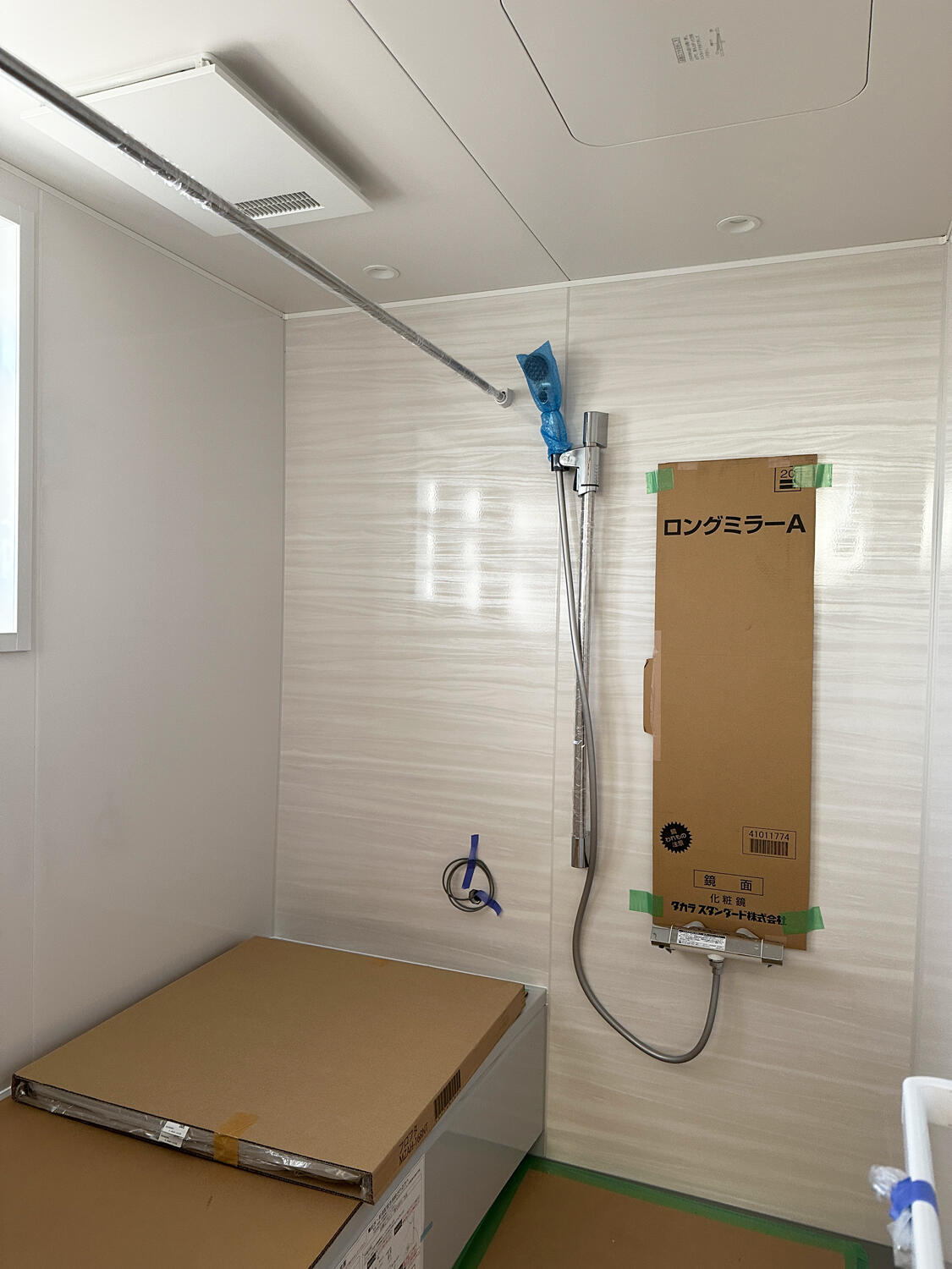 【香芝市】システムバスを設置しました 2025.12.13|お風呂 コーエイタウン香芝市穴虫の長期優良住宅の現場では、システムバスを施工しました。 タカラスタンダードのシステムバスを設置しました。 壁や天井の施工も完了し、浴室空間のかたちがしっかりと見えてきました。 タカラスタンダードならではの高品位なパネルと、すっきりとした納まりで、清潔感のある浴室に仕上がっています。 現在は各設備を丁寧に養生しており、完成後の姿が今から楽しみですね。 次の記事 前の記事 一覧に戻る