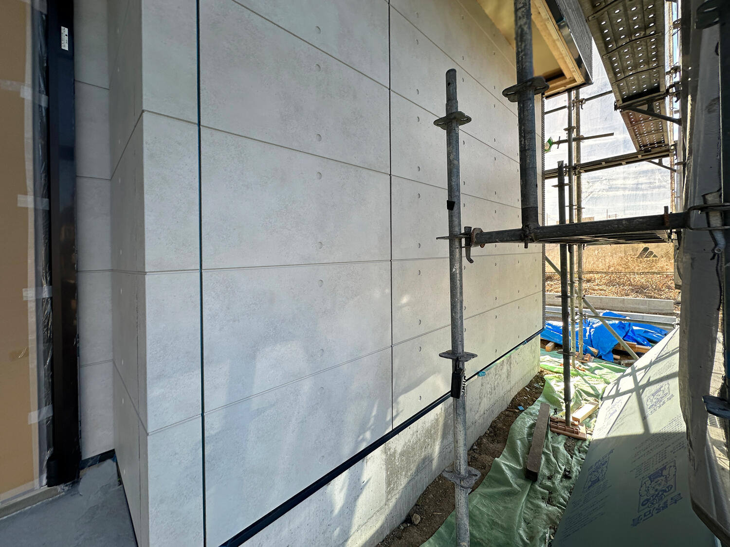 【香芝市】外壁の工事が進んでいます 2025.12.14|外壁工事 コーエイタウン香芝市穴虫の長期優良住宅の現場では、外壁のサイディングを施工しました。外壁のサイディング工事が進み、アクセント部分の施工が完了しました。 こちらは、ニチハの EFA4351NK(コンクリート打ちっぱなし柄) です。 本物のコンクリートのような質感で、目地のラインもきれいに揃っており、現場で見てもとても良い仕上がりです。 シンプルながら存在感があり、外観全体を引き締めてくれるアクセントになっています。 完成後の外観が、ますます楽しみですね。 次の記事 前の記事 一覧に戻る