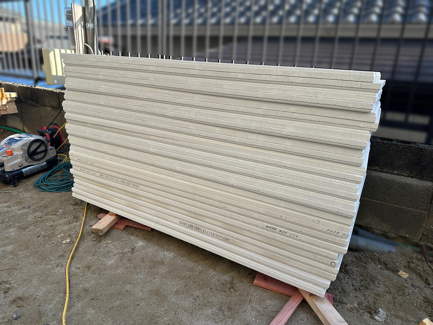 【奈良市】外壁工事が始まりました 2025.12.23|外壁工事|耐久性 こんにちは。奈良市の長期優良住宅&ZEH(ネット・ゼロ・エネルギー・ハウス)の現場では外壁工事が始まりました。外壁の通気層のため、外壁を留め付けるための胴縁(どうぶち)を施工しました。白いシートは透湿防水シートです。雨水の浸入を抑制し、壁の中の湿気を外に排出するシートです。この透湿防水にも耐久性が良いもの、そうでもないものがありますが、高栄ハウジングでは、高耐久のタイベックを採用しています。配管を施工したところは、綺麗に防水処理をしています。専用部材を使って、雨漏れ対策を徹底しています。バーナーであぶっても燃えない外壁、ALCパワーボードが搬入されました。 前の記事 一覧に戻る