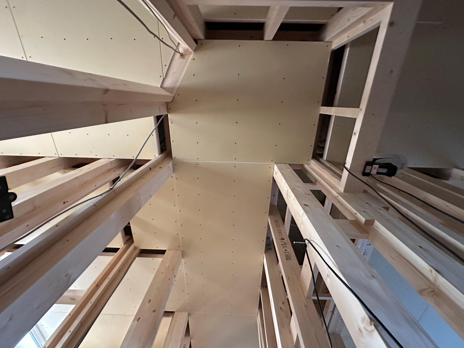 【奈良市】天井を張り進めています 2026.01.05|内装工事|大工工事 明けましておめでとうございます。本年もよろしくお願いいたします。奈良市の長期優良住宅&ZEH(ネット・ゼロ・エネルギー・ハウス)の現場では、天井を張り進めています。 次の記事 前の記事 一覧に戻る