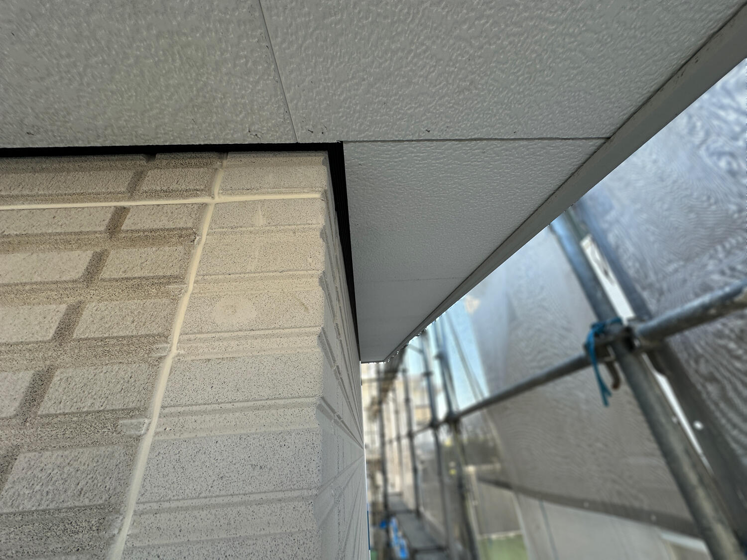 【奈良市】軒の天井が張り上がりました 2026.01.11|大工工事 こんにちは。奈良市の長期優良住宅&ZEH(ネット・ゼロ・エネルギー・ハウス)の現場では軒の天井が張り上がりました。軒と外壁の取り合いは黒い通気見切り材を入れています。軒の裏の通気を確実に取ることで、建物内の湿気を外に逃がします。内部では壁の石こうボードを張り進めています。 前の記事 一覧に戻る