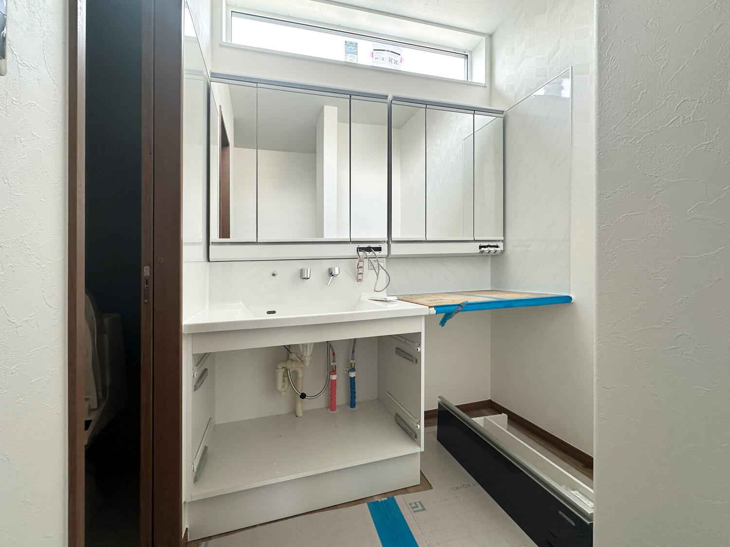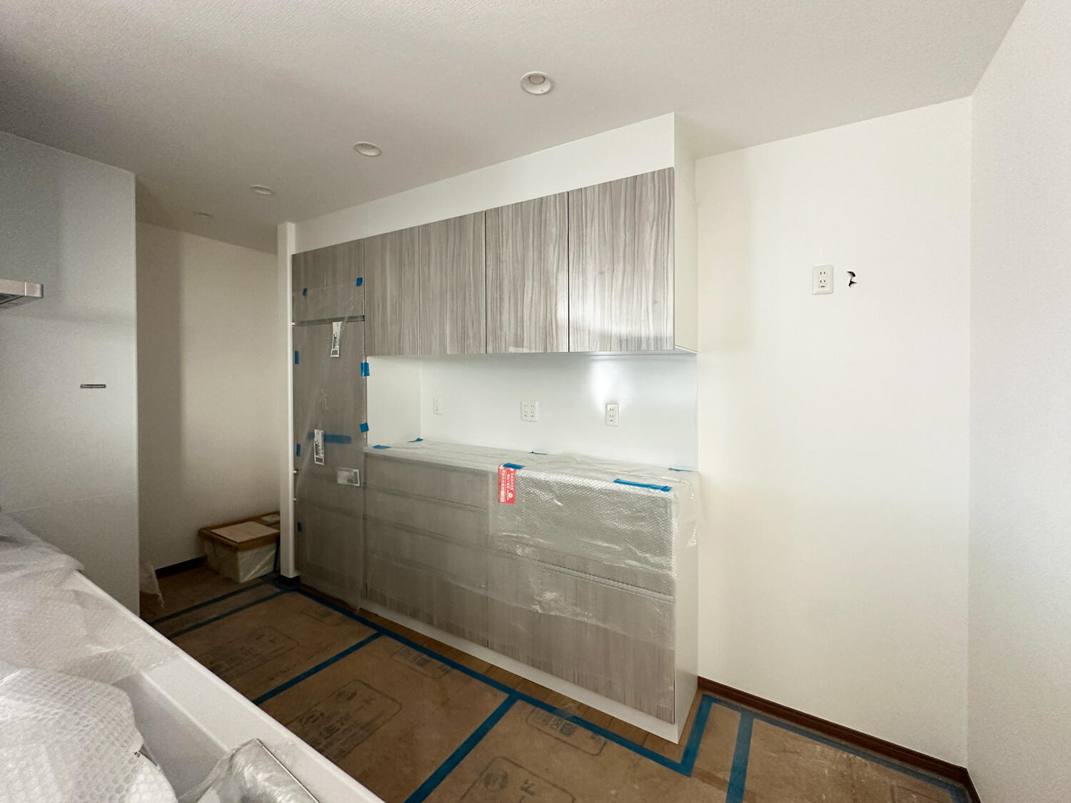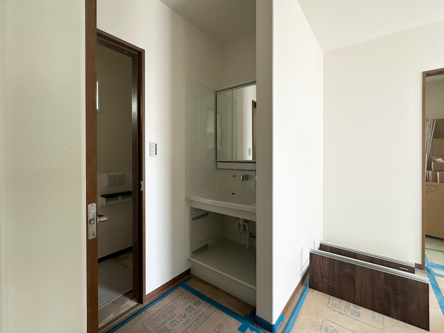 【奈良市】キッチン・カップボード・洗面化粧台・トイレを設置しました 2026.02.06|キッチン・洗面台|トイレ こんにちは。奈良市の長期優良住宅&ZEH(ネット・ゼロ・エネルギー・ハウス)の現場では、住宅設備を設置しました。使い勝手の良いタカラスタンダードのキッチンです。キッチンと同色の扉カラーのカップボードです。トイレを出てさっと使える洗面化粧台です。クッションフロアがオシャレなトイレです。2人並んでもゆったり使える洗面化粧台。モルタル調のクッションフロアが落ち着いた雰囲気を創るトイレ。カウンターとホーローパネルで便利な室内干しコーナー小型のエアコン室内機も設置完了です。 次の記事 前の記事 一覧に戻る